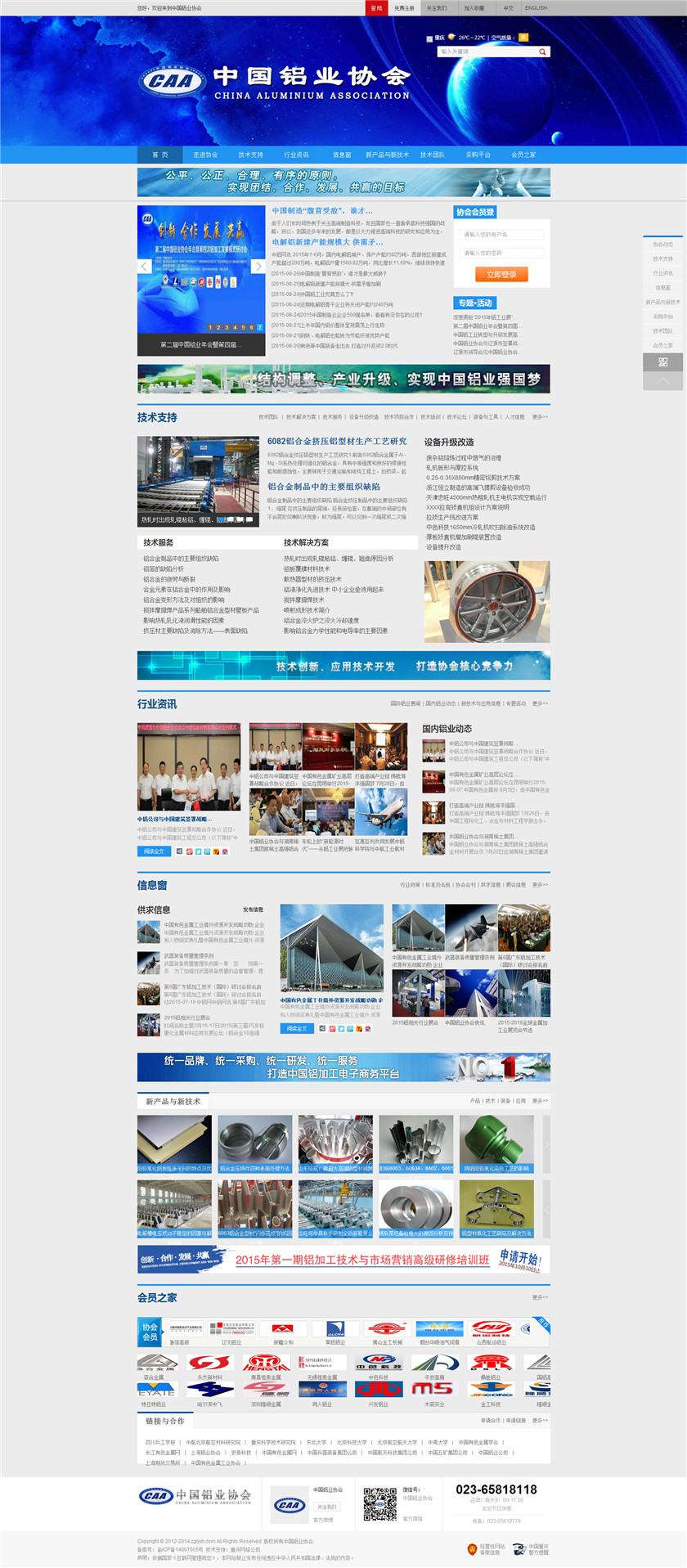 Project Description 中国铝业协会是由中国国内主要从事铝合金铸造、板、带、箔、管、棒、型材、锻件等企业组成的行业协会组织,协会由国内具有一定规模和影响力的企业发起,已有三百多家会员企业,目前还有很多企业踊跃希望加入,协会现有会员企业年销售额1000多亿元人民币,协会会员企业分布在国内华东、华南、西南、环渤海、东北、胶东半岛等中国经济活跃地区;产品涵盖航空航天、兵器装... Official website address 吴忠http://www.caa2014.com I want to share